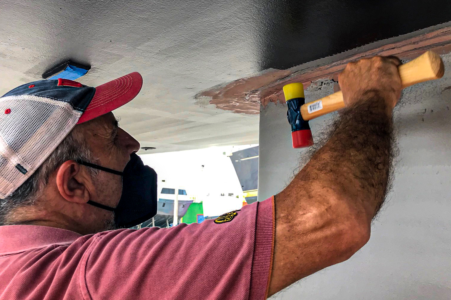- Fiberglas teknelerin karinasında ya da üst binanın kritik noktalarında nem ölçümlerinin ve perküsyon testlerinin , şüpheli bölgelerde delaminasyon kontrolu amacıyla ultrasonik tarama işlemlerinin yapılması,